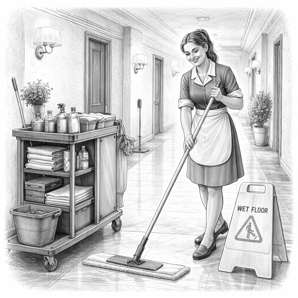 • Codzienne i okresowe sprzątanie pokoi hotelowych (checkout, stayover, deep cleaning)